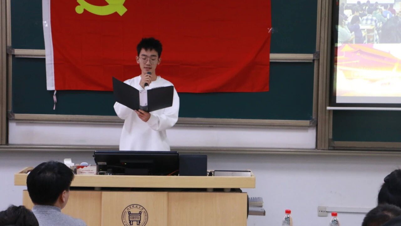 最后,党校四班董文龙同学作为本期业余党校学员代表发言。他系统回顾了本期党校的理论学习与实践活动,表示这是一次深刻的思想淬炼与精神洗礼。从周鑫老师阐释党与青年血脉联系的生动报告,到张满银教授对国家“十五五”发展战略的深度解读,再到中国共产党历史展览馆中沉浸式的党史学习,一系列课程让学员们深化了对党的创新理论和国家战略布局的理解,进一步筑牢了信仰之基。董文龙代表全体学员郑重承诺,将把党校所学内化于心、外化于行,立志把个人理想融入国家发展的宏伟蓝图,以“有理想、敢担当、能吃苦、肯奋斗”的姿态,在中国式现代化的新征程上奋力奔跑,为民族复兴贡献青春力量。