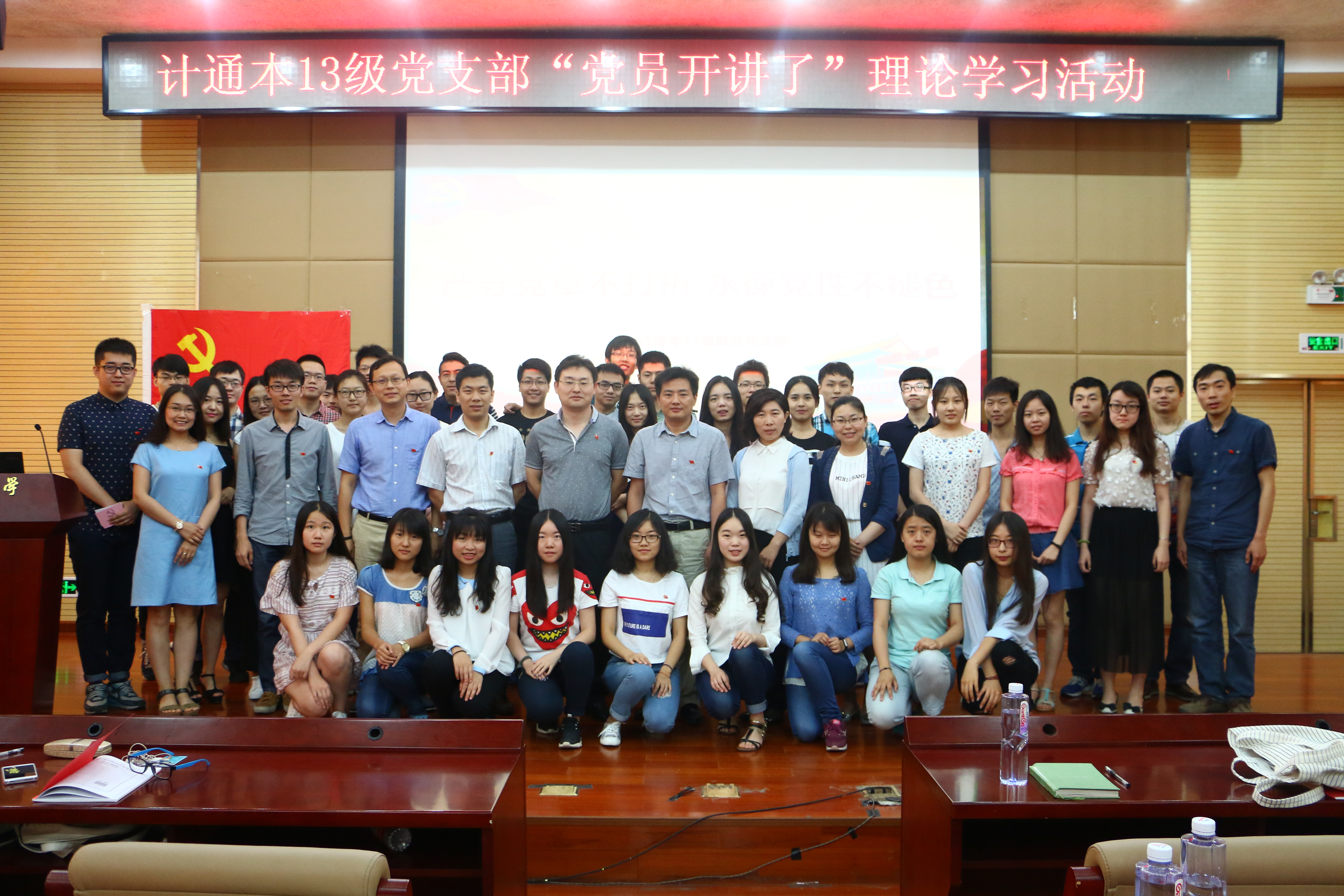 本13级党支部举行了“党员开讲了”理论学习活动。我校学生处处长于成文、党校办副主任、学校两学一做办公室副主任郭志恒、党委宣传部副部长、学校两学一做办公室副主任李洁、学生处副处长、学校两学一做办公室副主任史立伟,以及自慰喷水