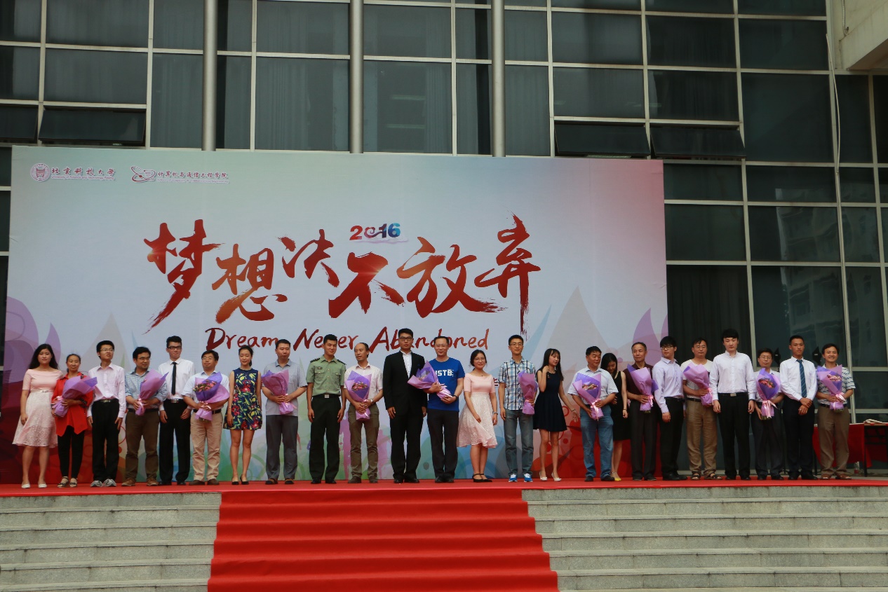 2016届本科生毕业典礼在机电信息楼南广场隆重举行。校学生工作部部长于成文、校招生就业处处长尹兆华、校团委书记李磊、校友会基金会办公室主任吕朝伟、自慰喷水