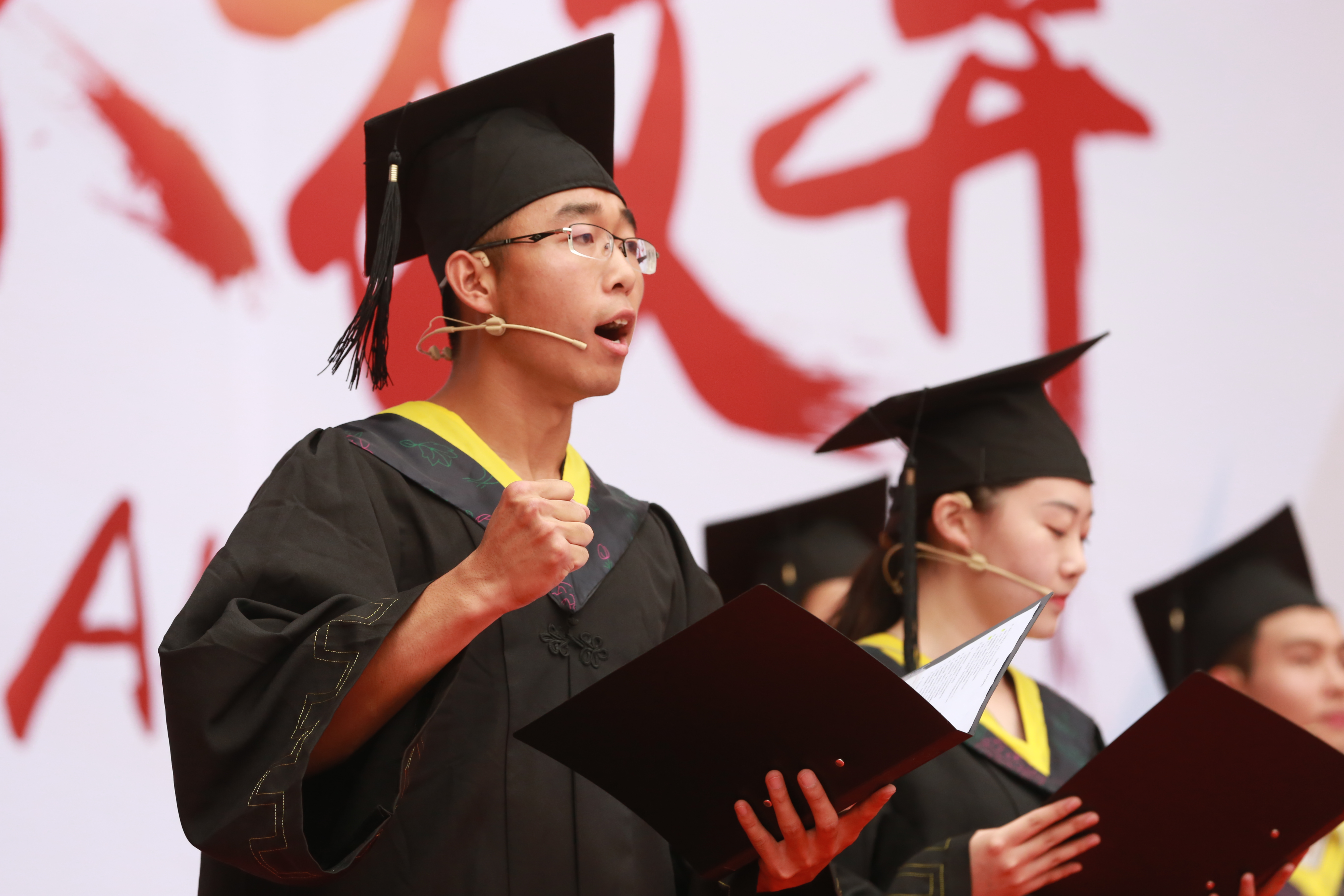 接下来毕业生代表带来了激昂澎湃的诗朗诵《永不放弃的梦想》,一句“厚德博学,求实创新,让计通的品格引领我们阅读这精彩的篇章;奋勇争先,追求卓越,让计通的精神在我们心中源源不断的流淌。”展现出367名同学在即将离开母校迈向社会的自信与风采。在朗诵的最后,同学们深情的喊出了“北科大计通人的价值应当跃动在无垠的国疆,因为这是我们“生于斯,长于斯”的地方!”
