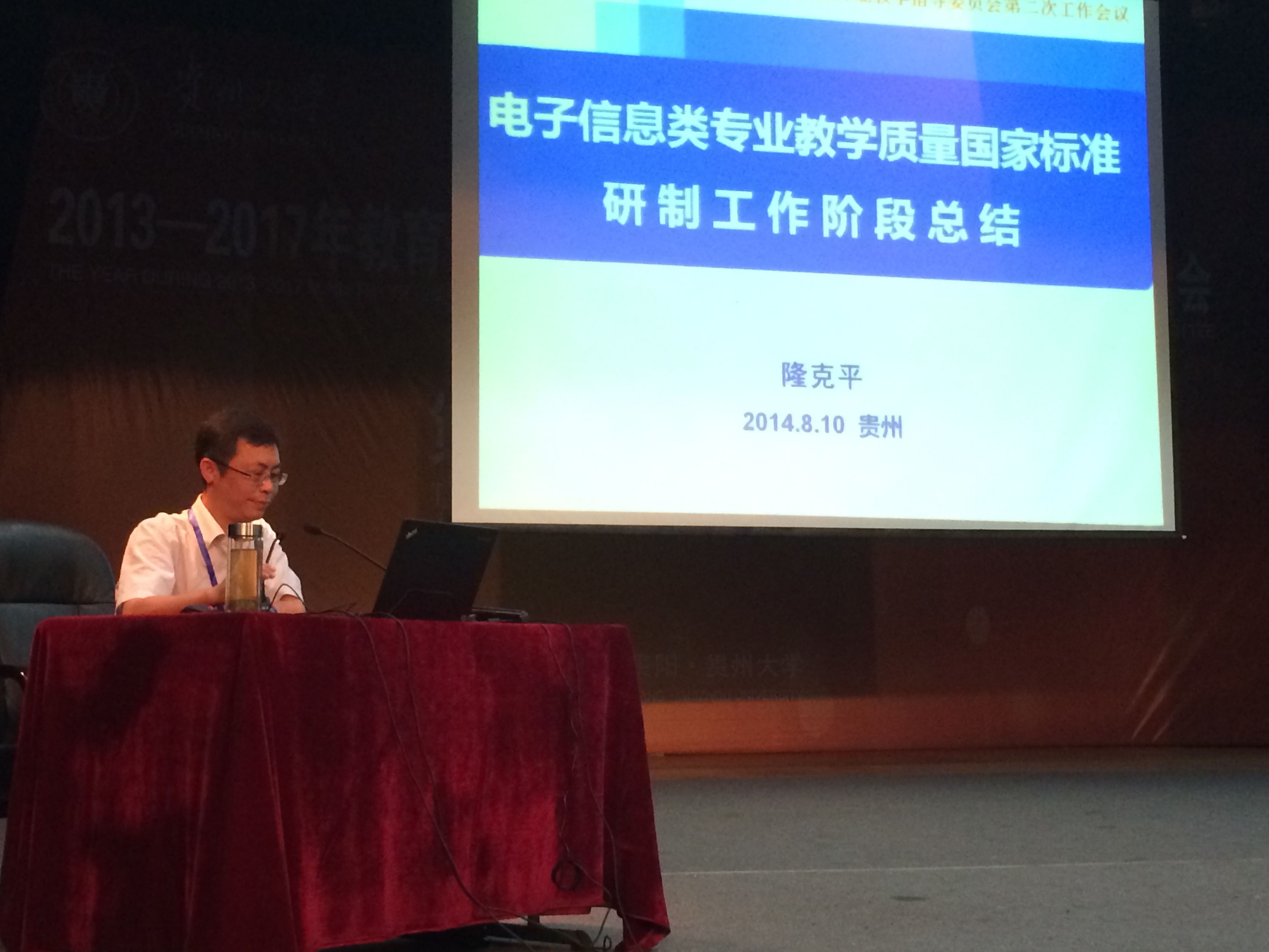 2013-2017年教育部高等学校电子信息类专业教学指导委员会于8月10日在贵阳举办第二次工作会议,教育部高教司领导及全国高校600余位电子信息类专家与会。自慰喷水 院长隆克平教授作为教指委副主任委员出席会议,副院长王建萍教授作为协作委员会委员参加会议。