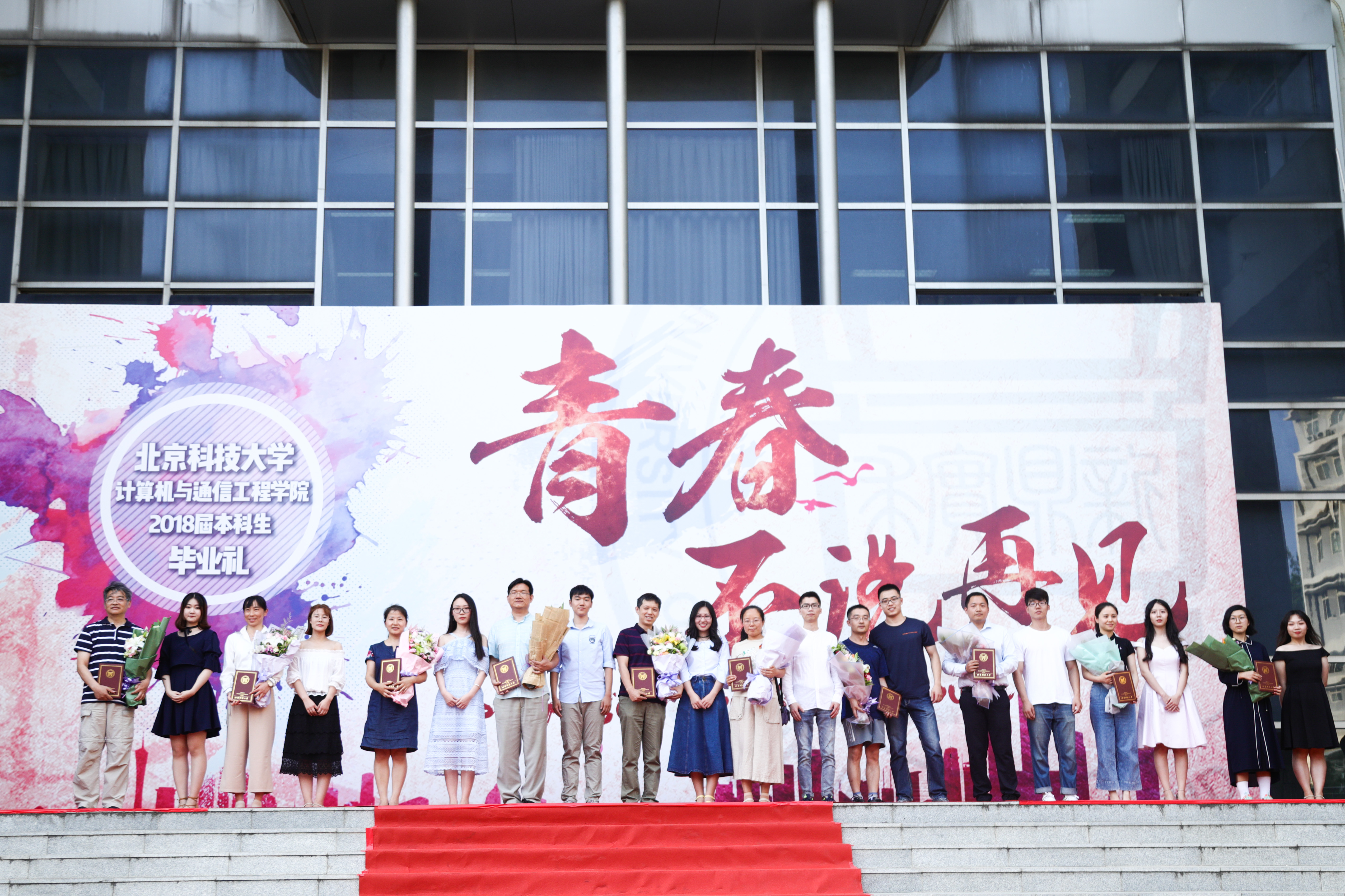 首先,2018届毕业生代表向学院教师代表献花。