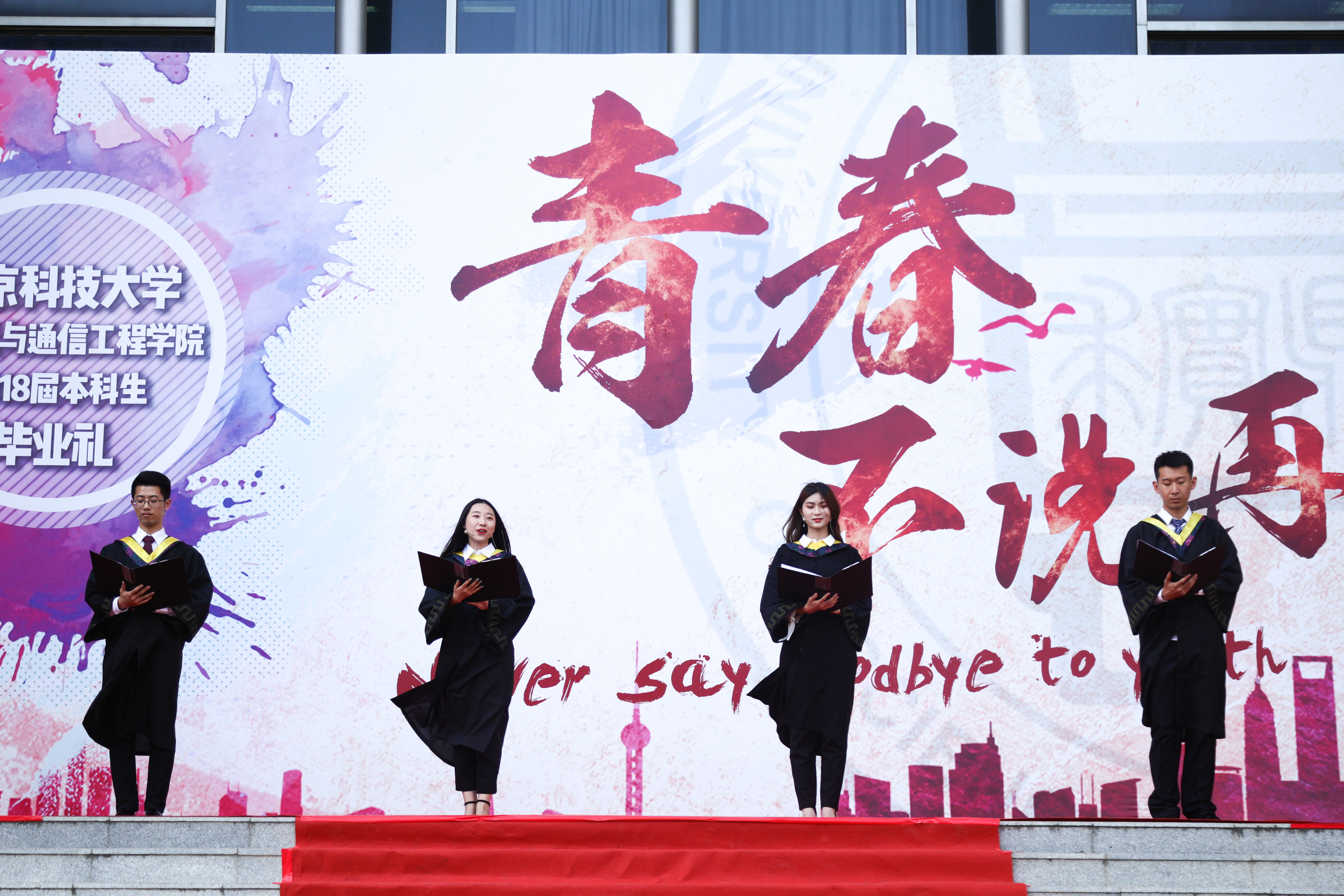 毕业生代表带来了歌曲《不说再见》。