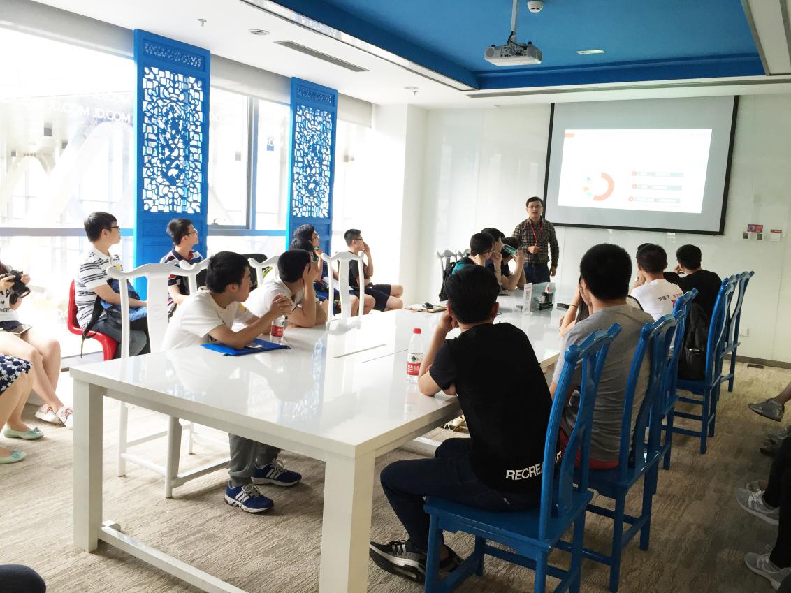参观结束后,李振华带领大家进入会议室,详细地介绍了招聘计划和理念,并播放了宣传视频,让大家感受与众不同的“京东范儿”,让同学们了解在互联网社会创新与前进的重要性。讲解完后,同学们纷纷提出自己的问题,李振华耐心幽默地解答也使同学们对京东有了更加直观与深入的了解,并对未来的职业方向也有了更进一步的规划,整个氛围热烈而轻松。