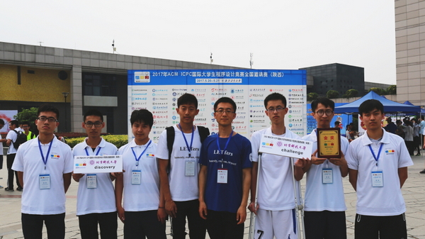 2017年5月,ACM国际大学生程序设计竞赛(ACM-ICPC)全国邀请赛在西北工业大学举行。由我校学生李志远、徐经纬、陈笑天三名同学组成的队伍“challenge”夺得金奖,捧回了我校历史上的第一枚ACM-ICPC金牌。