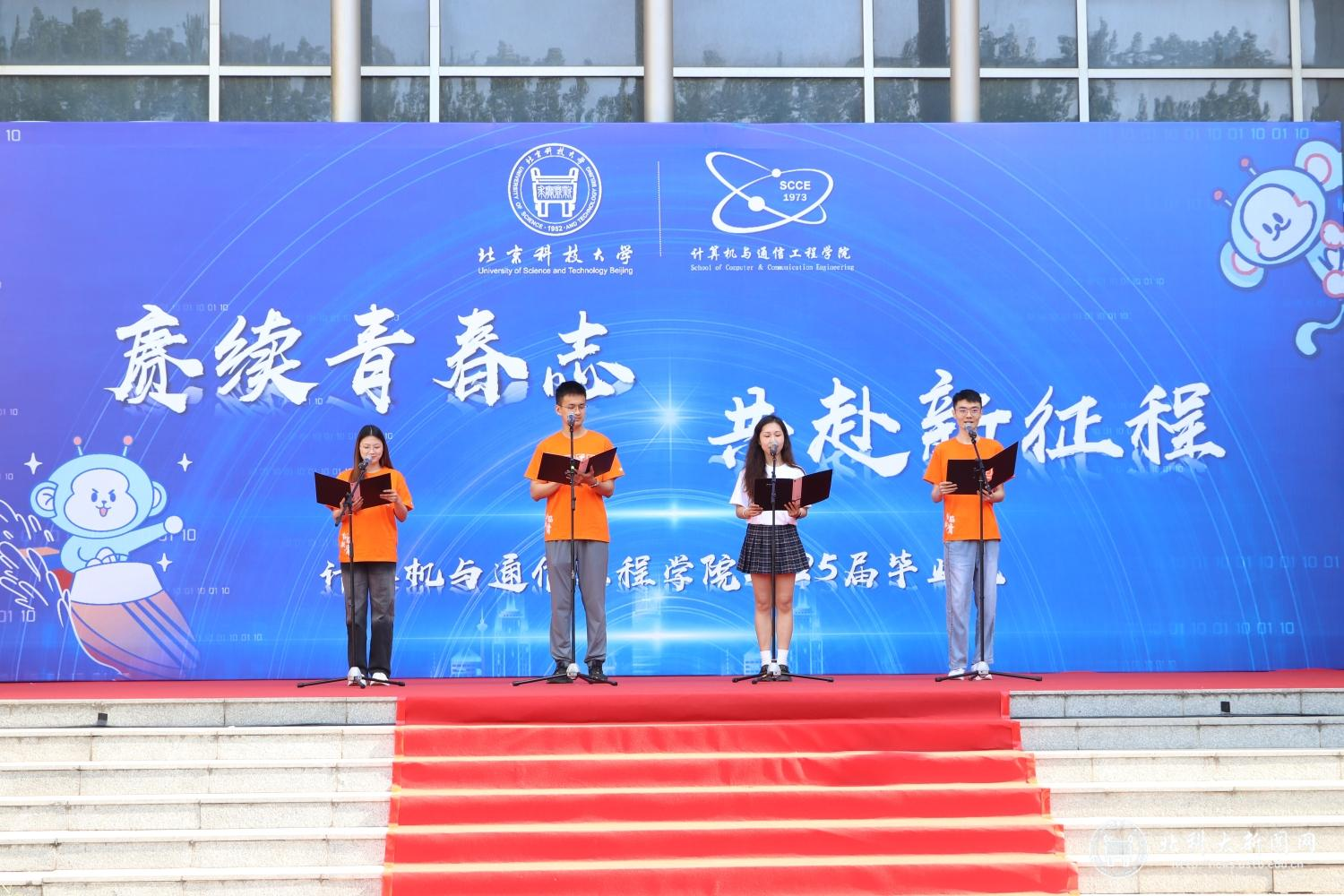 殷绪成教授在毕业致辞中深情回顾学子成长历程,勉励大家坚定信念,勇敢追梦。毕业生代表以原创诗朗诵《满井时光,计通华章》追忆青葱岁月,寄托对母校的依依惜别之情,也许下对未来的坚定承诺。