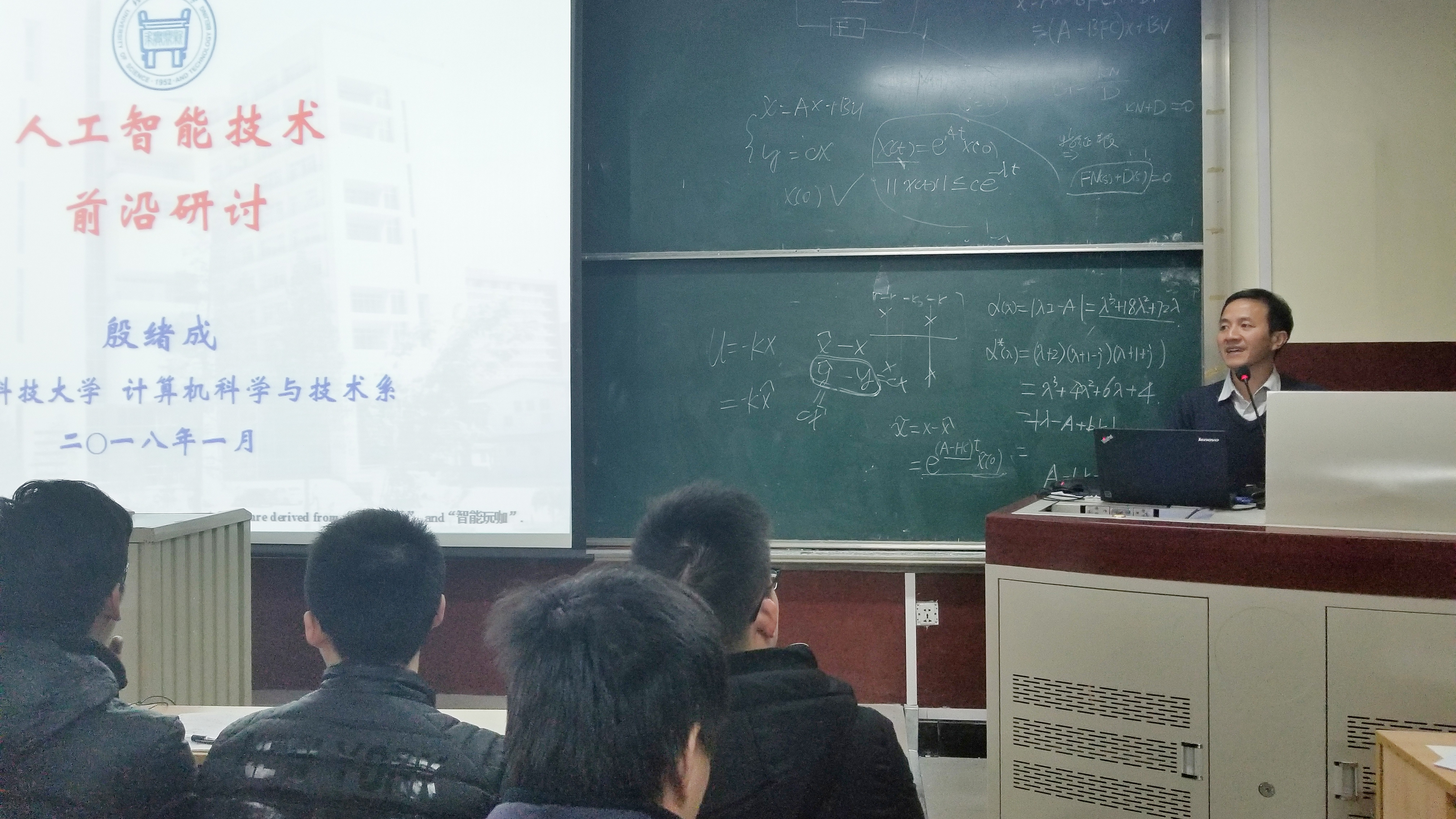 1月8日下午,自慰喷水 殷绪成教授在管庄教学楼401教室作题为《人工智能技术前沿研讨》的学术讲座,带领学生探讨了人工智能方面的前沿技术。 殷绪...