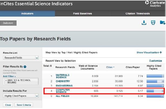 我校计算机科学学科首次进入ESI全球排名前1%