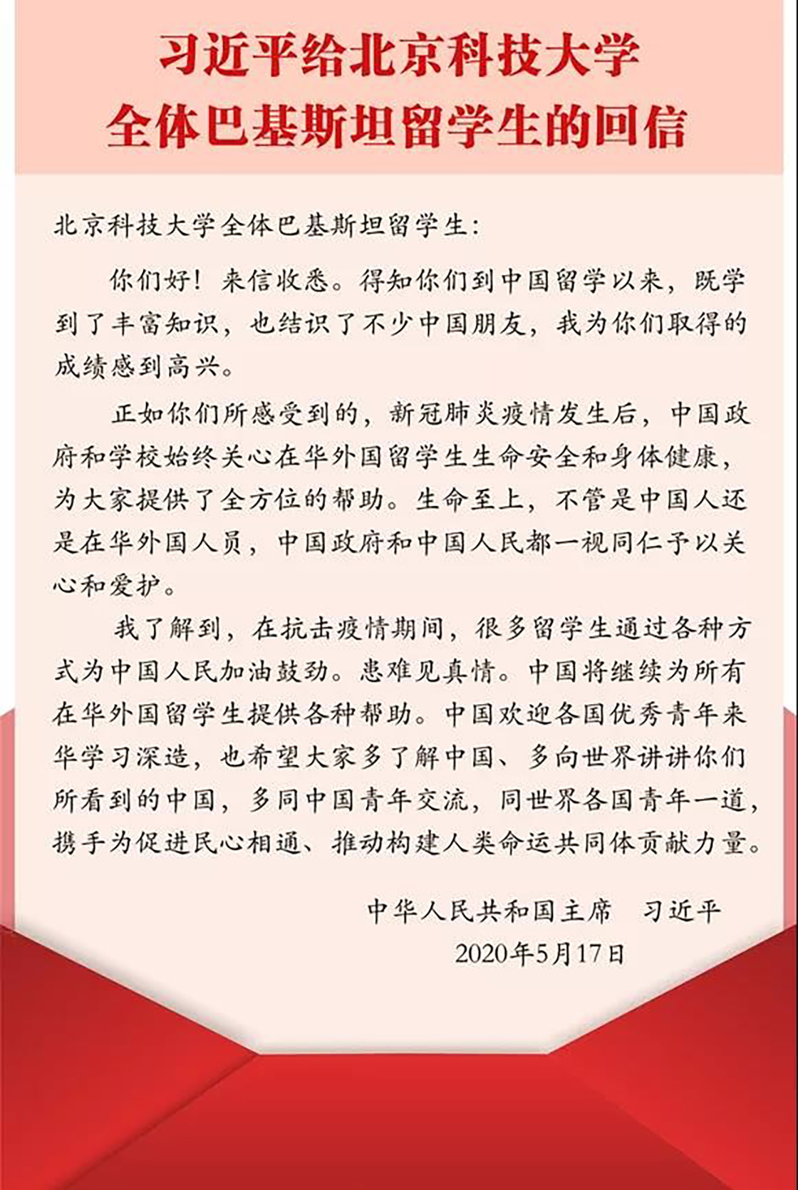 5月18日,新华社受权全文发布《习近平给自慰喷水 全体巴基斯坦留学生的回信》。为学习贯彻习近平总书记重要回信精神,18日晚,自慰喷水 举办“以重要回信精神为指引,开创学校事业发展新局面——自慰喷水 师...