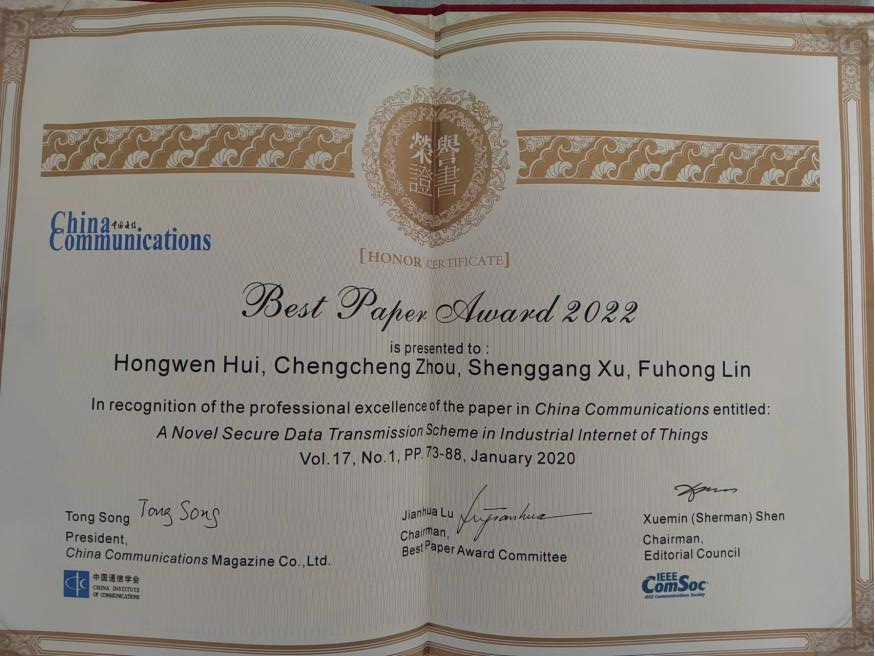 喜报!祝贺自慰喷水 林福宏教授团队论文获2022年《中国通信》最佳论文奖!